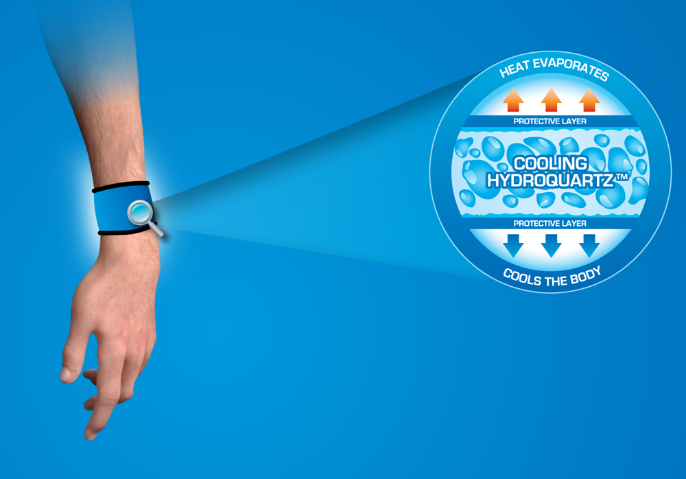 Chladící bandáž na zápěstí Aqua CoolKeeper™ Pacific Blue je velmi elegantním doplňkem z řady ochlazujících výrobků Aqua CoolKeeper™. Ty mají naprosto jedinečné vlastnosti díky speciálně vyvinutému HydroQuartz™ gelu, který aktivujete jednoduše ponořením do vody. HydroQuartz™ gel do sebe postupně "nasaje" všechnu vlhkost a svou chladící schopnost si udrží až pět dní, přičemž náramek zůstává po většinu času na povrchu suchý. Chladící bandáž na zápěstí Aqua CoolKeeper™ lze samozřejmě používat opakovaně. Ideální doplněk pro sport a výlety v horkém létě. K dostání je ve třech velikostech.