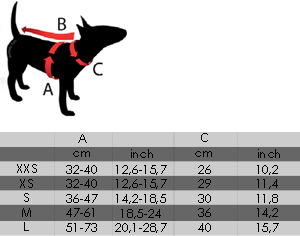 Velikost je určena obvodem hrudníku v nejširším místě a obvodem krku.